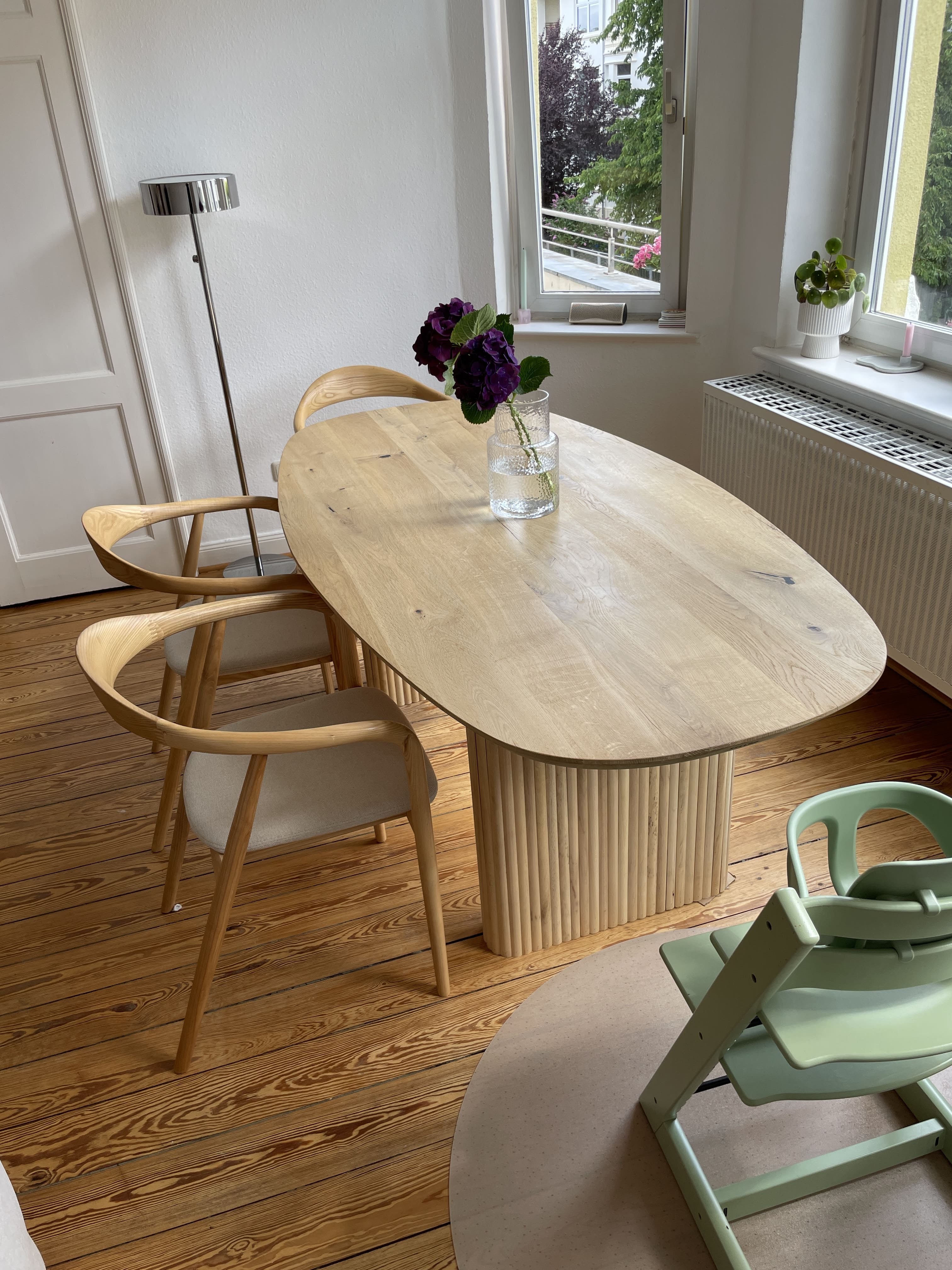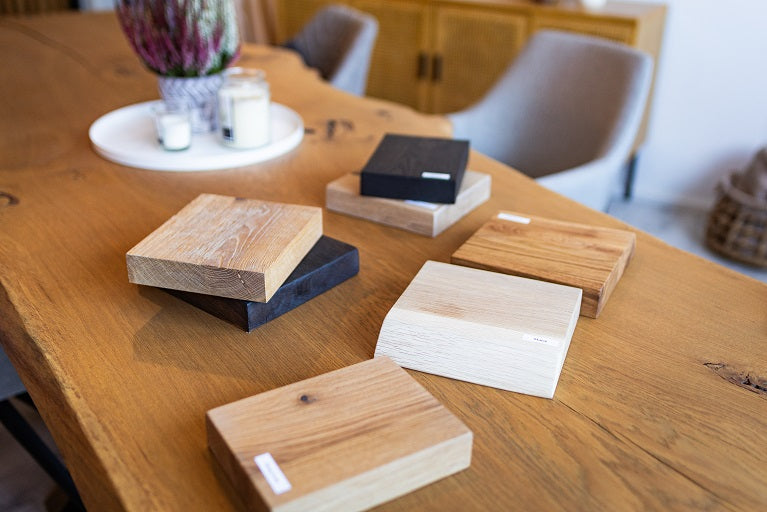 Teste die Farbe, Qualität und Oberfläche bei Dir zu Hause, um sicherzustellen, dass Dein neuer Eichentisch perfekt passt.